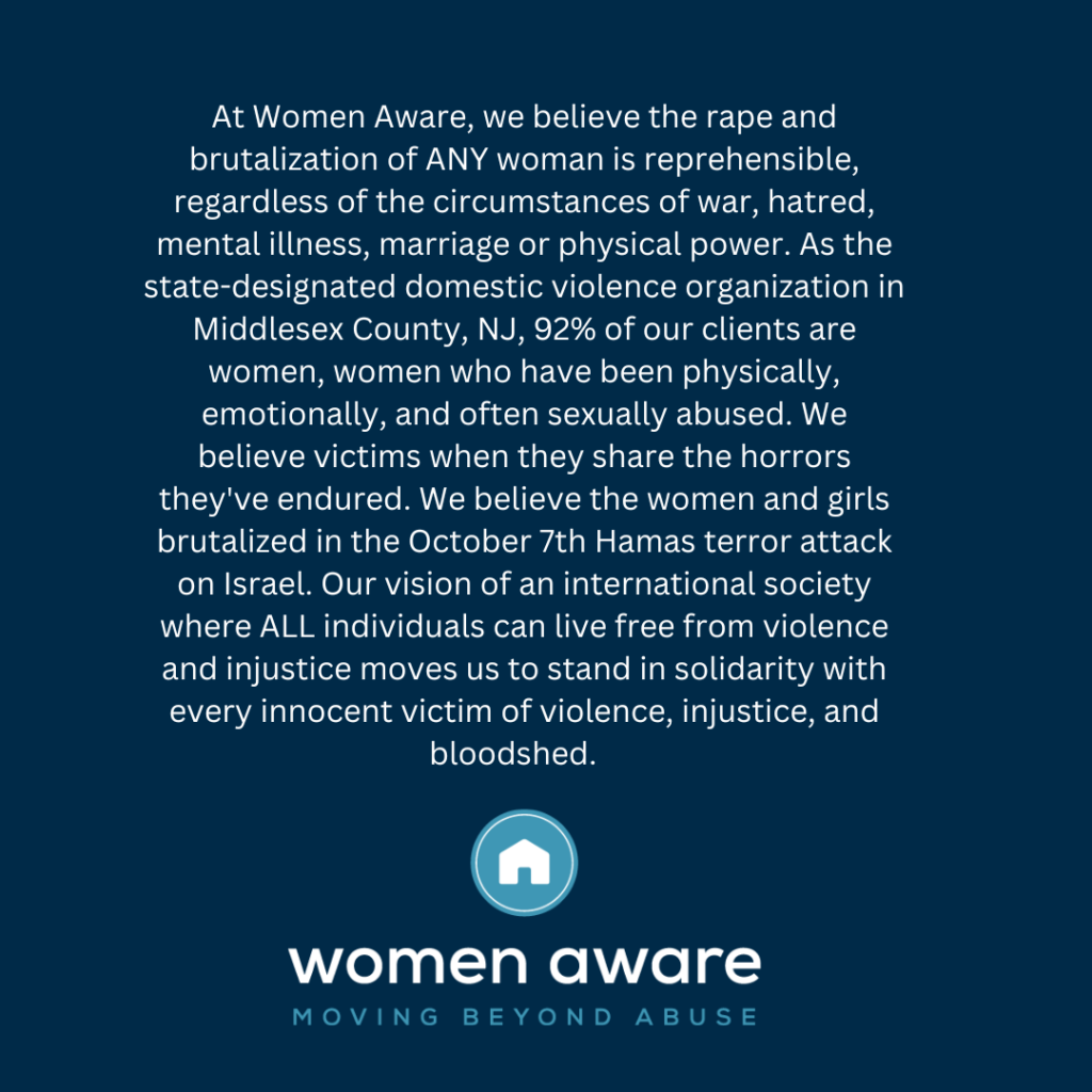 Individuals seeking additional information can contact Women Aware’s 24-hour hotline at 732-249-4504 or toll-free at 833-249-4504 or walk in to the Middlesex County Family Justice Center to speak with an advocate. The FJC is located at 100 Bayard Street, New Brunswick, and is open Monday through Friday, 8:30 a.m. to 4:00 p.m.